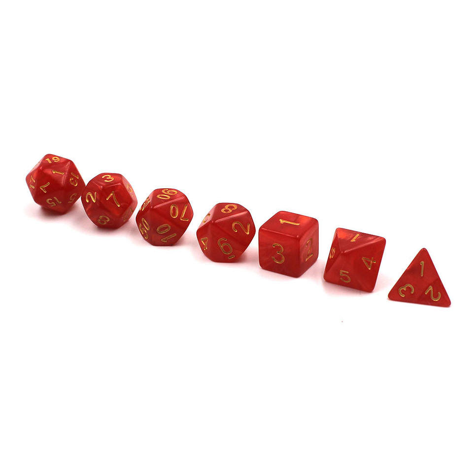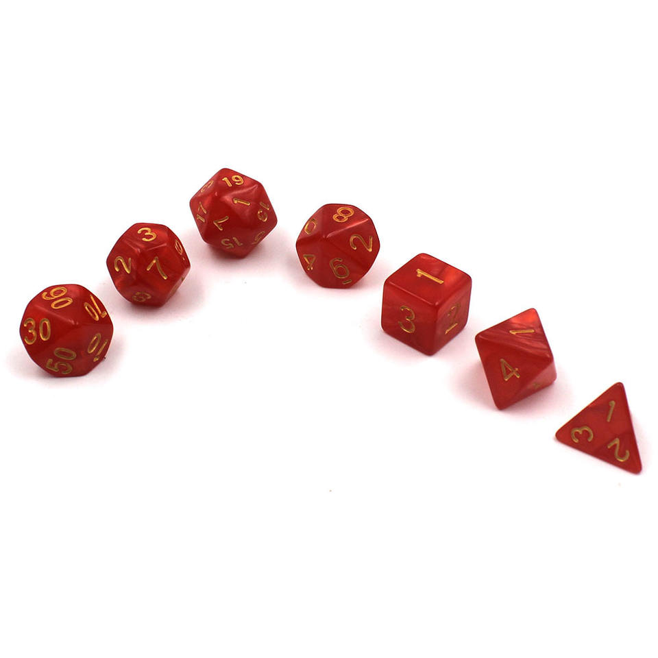 TRPG ชุดลูกเต๋าหลายด้าน7ชิ้นลายมุกในน้ำมันทองคำสีแดงสำหรับกลุ่มวิ่ง DND จัดหาข้ามพรมแดน