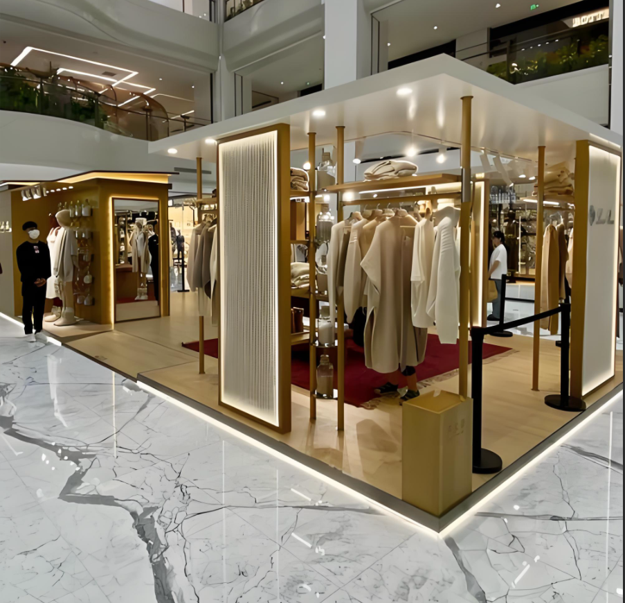 TRUST โครงสร้างแบบพกพาประกอบง่าย ไฟส่องสว่างในตัว ปรับแต่งได้ โครงสร้างไม้-อลูมิเนียมอัลลอยด์ผสม 3 มิติ ระดับไฮเอนด์ สำหรับร้านขายเสื้อผ้าเคลื่อนที่