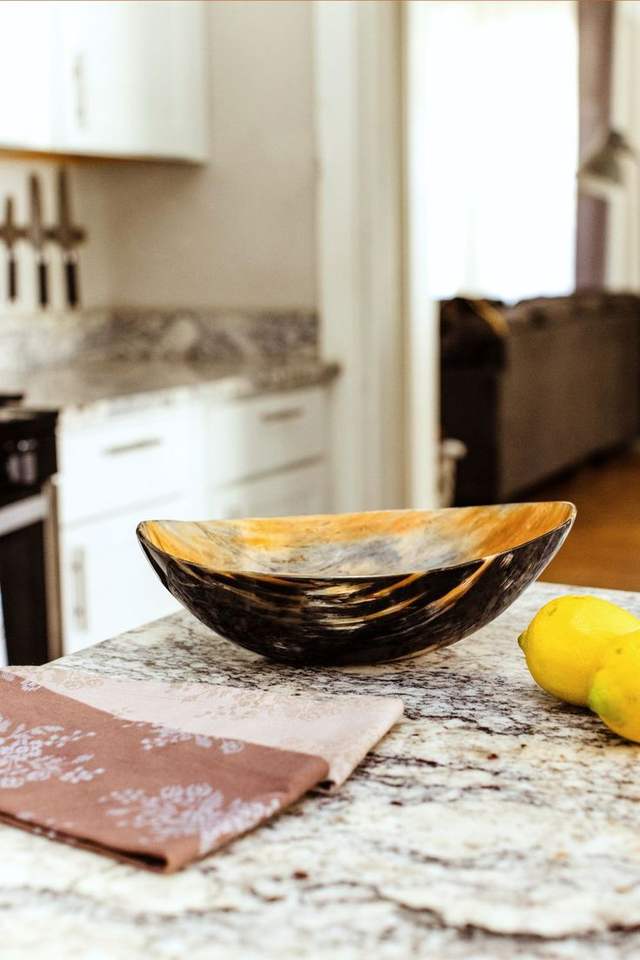 ลองทำด้วยมือคุณภาพสูงทำด้วยมือชามฮอร์นขัดสูงเครื่องครัวสำหรับเสิร์ฟซุปก๋วยเตี๋ยว
