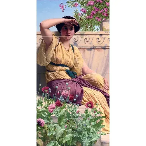 ทริสท์เจภาพจิตรกรรมฝาผนังกระเบื้องดอกไม้ godward สำหรับผู้หญิงและเด็กผู้หญิงศิลปะหินอ่อนผนังกันน้ำมันกระเด็น