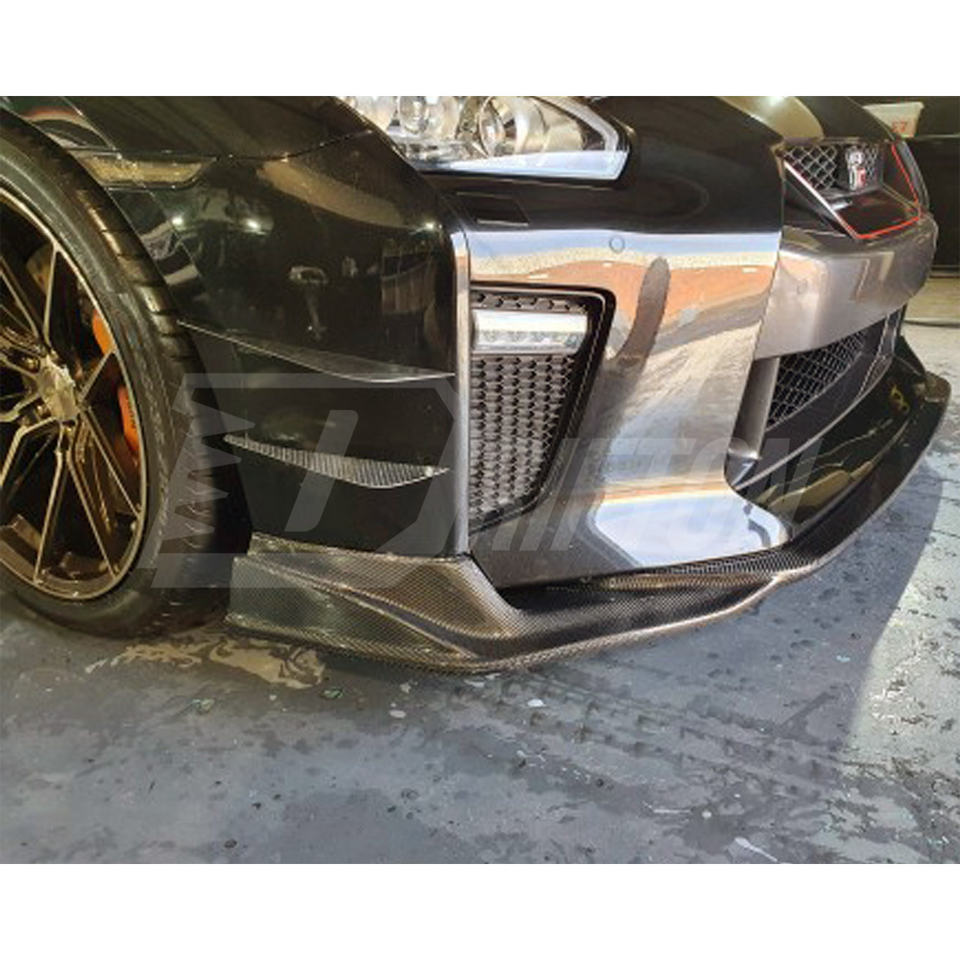 ลิ้นหน้าคาร์บอนไฟเบอร์ทรง TS ใหม่ สำหรับ GTR R35 ติดตั้งกับกันชนแบบ OEM พร้อมป้องกันรังสียูวี