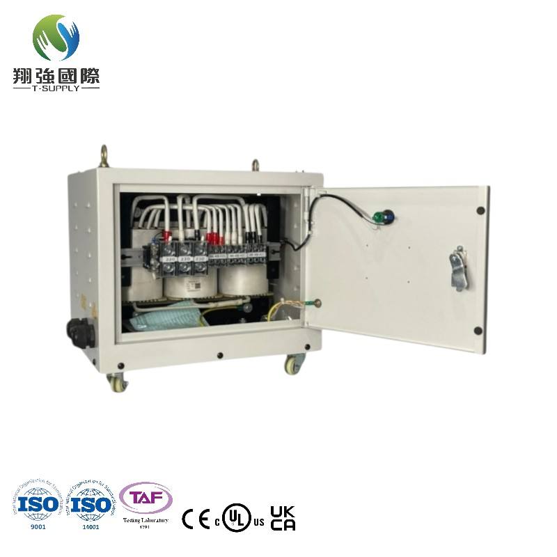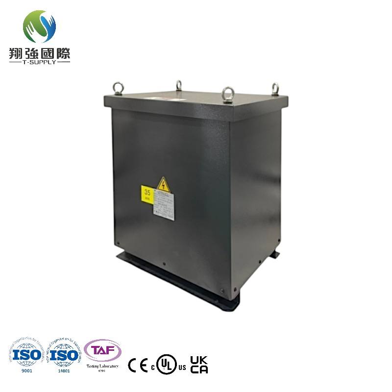 หม้อแปลงไฟฟ้าแบบแห้งชนิดทองแดงพันขดลวด รุ่น TS ของ TS Supply ขนาด 220V ถึง 440V 3 เฟส กำลังไฟ 1kva-1000kva ความถี่ 50/60Hz ประสิทธิภาพสูง