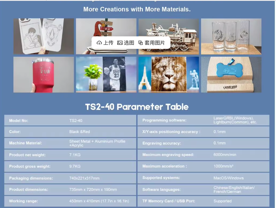 เครื่องแกะสลักเลเซอร์ TS2-40W เครื่องตัด CNC พร้อมระบบ Air Assist ในตัว ควบคุมผ่านแอพ รองรับการพิมพ์ออฟไลน์ ขนาด 410*410 มม.