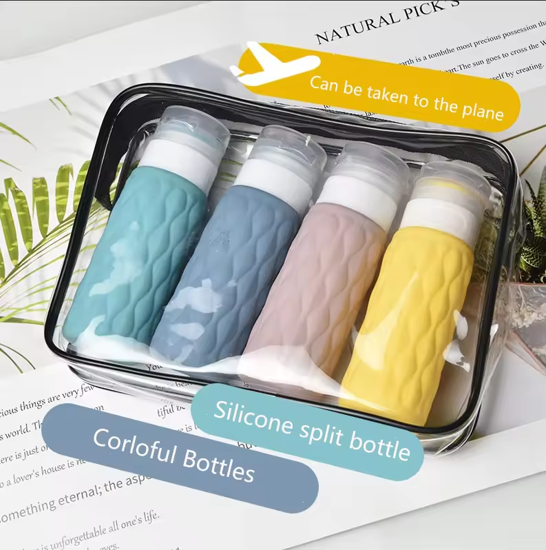 Collar Material:Silicone cosmetic packaging travel bottle set