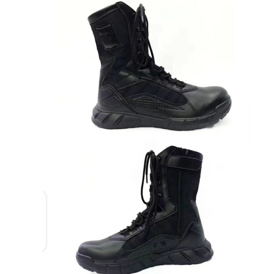 รองเท้าบูททะเลทรายน้ำหนักเบาสีดำ TSB0109 ขนาด 9.5 นิ้ว พื้นรองเท้า PU หนังวัวกลับ รองเท้าคอมแบท