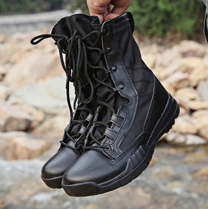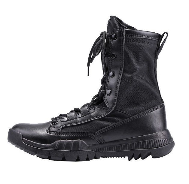 รองเท้าบูททะเลทราย TSB1102 รุ่นโปรโมชั่นพิเศษ น้ำหนักเบา ผลิตจากหนังกลับสีน้ำตาลเข้มมาก รองเท้าบูททางยุทธวิธี หนังสีดำเงา