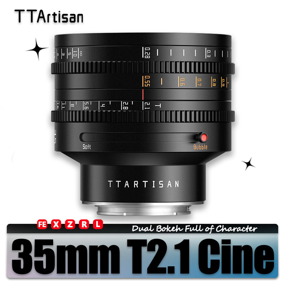 เลนส์ TTArtisan 35 มม. T2.1 ฟูลเฟรม ดูอัล โบเก้ ซีน สำหรับกล้องถ่ายภาพยนตร์ โฟกัสคงที่ ตัวเรือนโลหะ 82 มม. สำหรับกล้อง E