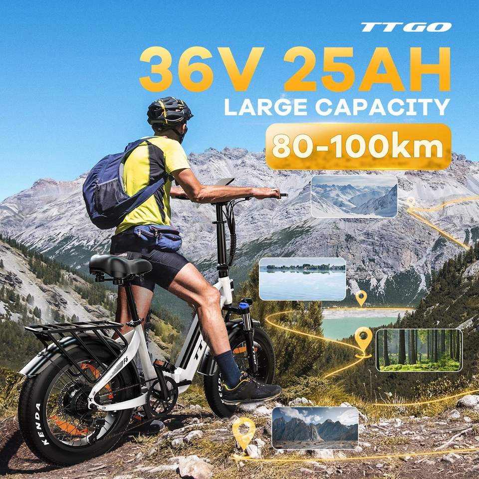 จักรยานไฟฟ้าพับได้ TTGO F6 มอเตอร์ 250 วัตต์ แรงบิด 45 นิวตันเมตร แบตเตอรี่ 36 โวลต์ 20 แอมป์ชั่วโมง ระยะทาง 120-150 กิโลเมตร