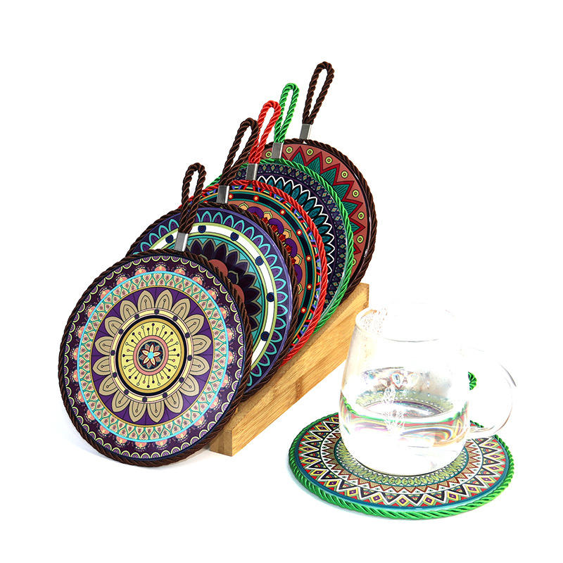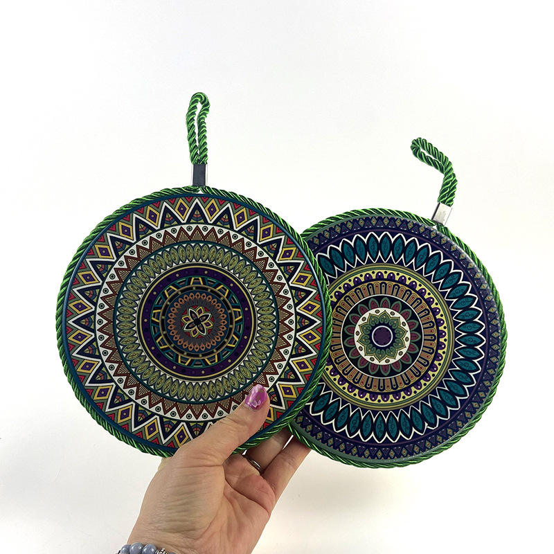 แผ่นรองหม้อเซรามิก TTH16YUAN245g-1 ขนาด 17 ซม. ลายแมนดาลา รูปทรงกลม ซักล้างได้ ทนความร้อน ใช้ป้องกันพื้นผิวโต๊ะสำหรับใช้ในครัว