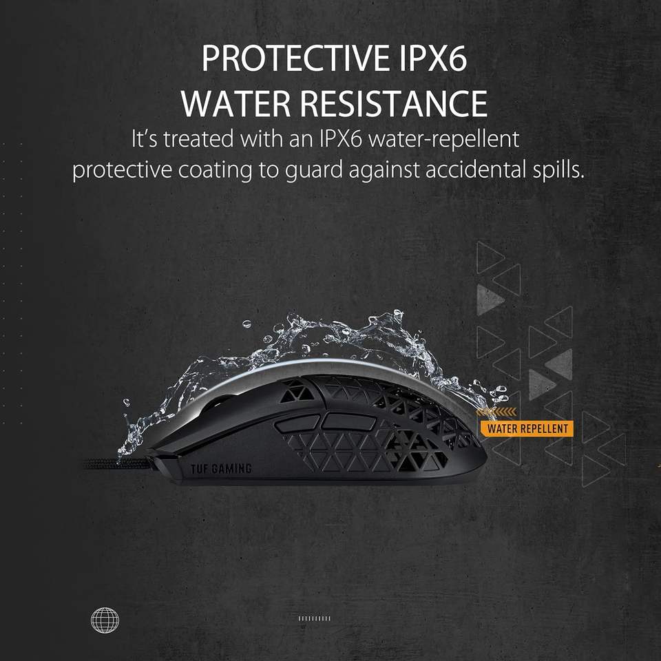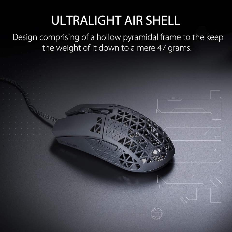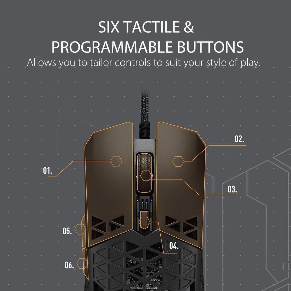 เมาส์ TUF Gaming M4 Air น้ำหนักเบา สีดำ เซ็นเซอร์ออปติคอล 16000 DPI ปุ่มตั้งค่าได้ 11 ปุ่ม เมาส์เกมมิ่งสำหรับมือขวา