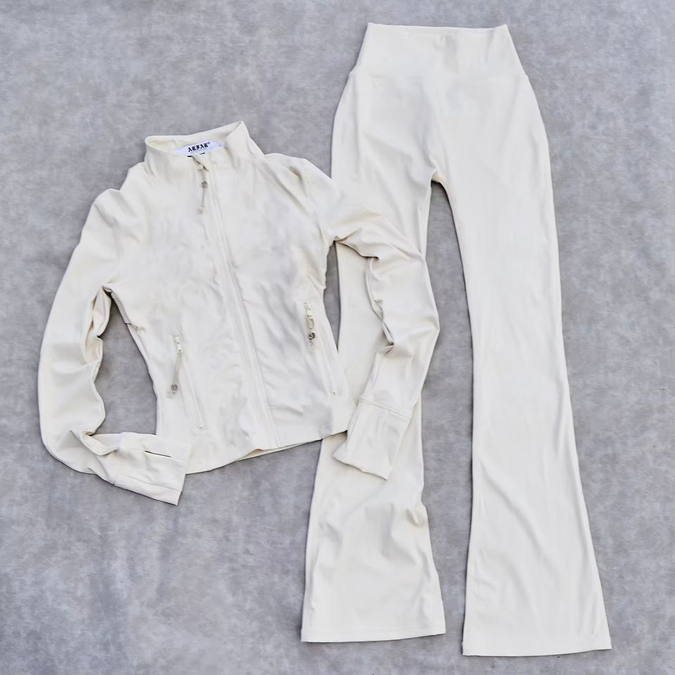 ชุดออกกำลังกายกันน้ำสำหรับผู้หญิงไซส์ใหญ่ ยี่ห้อ TUOYI สำหรับสาวร่างสูง ชุดสองชิ้น เสื้อแจ็คเก็ตซิป กางเกงทรงสกินนี่ขาบาน
