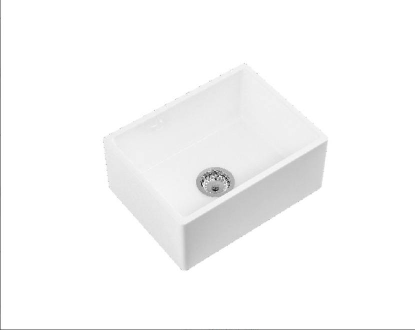 อ่างล้างจานครัวทรงสี่เหลี่ยมแบบเซรามิกทันสมัยสไตล์ตุรกี สำหรับใช้งานเชิงพาณิชย์ ผิวขัดเงา ติดตั้งแบบ Apron Front รูเดียว