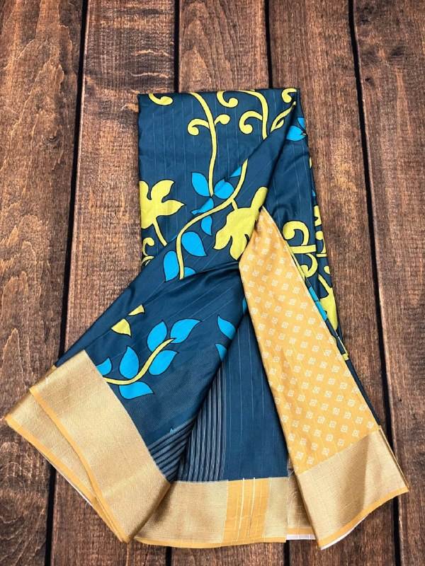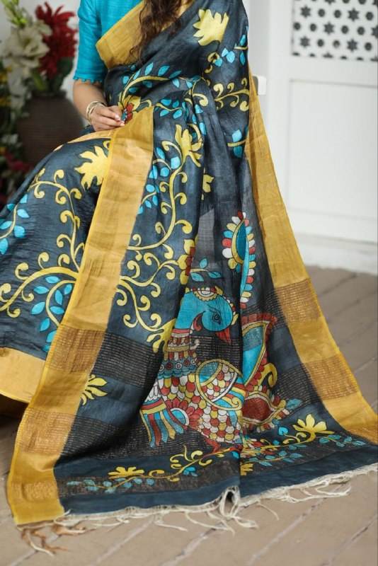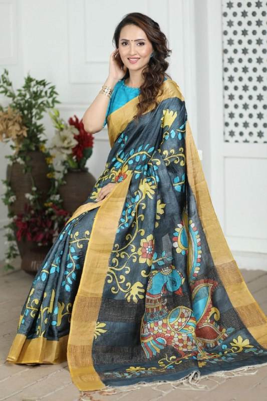 ผ้าส่าหรีผ้าไหม tussar มีขอบ Jari กับเสื้อ