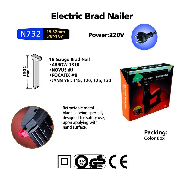 เครื่องยิงตะปูลมไฟฟ้า TUV/GS, CE รับรองมาตรฐาน 220V 15(5/8")-32มม.(11/4") ขนาด 18 เกจ