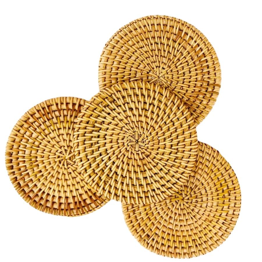 จานหวายสานลายดอกไม้แบบดั้งเดิม ทำด้วยมือจากหวายธรรมชาติ เหมาะสำหรับตกแต่งในวันหยุดและเป็นของขวัญ ผลิตในเวียดนาม