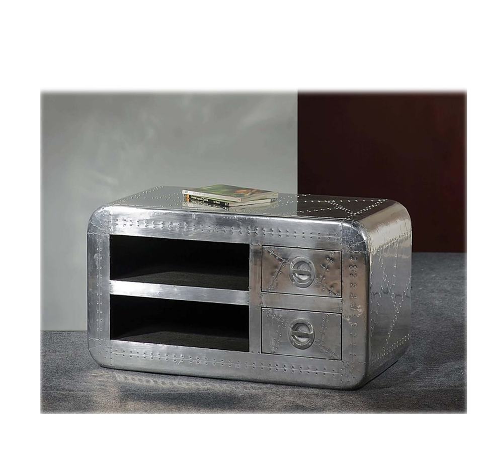 ตู้ทีวีอลูมิเนียมนักบินแบบทันสมัยขาตั้งทีวีไม้เนื้อแข็งพร้อมโลหะสำหรับเฟอร์นิเจอร์ห้องนั่งเล่น