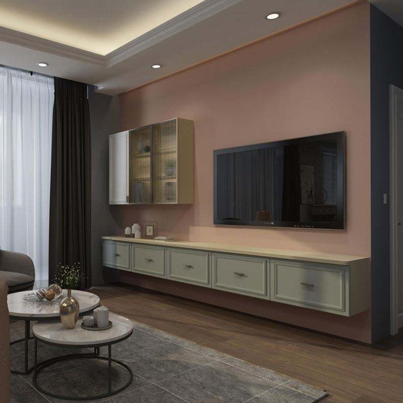 ตู้วางทีวีดีไซน์ทันสมัยหรูหราสำหรับห้องนั่งเล่นพร้อมขาตั้งติดผนังแบบลอย