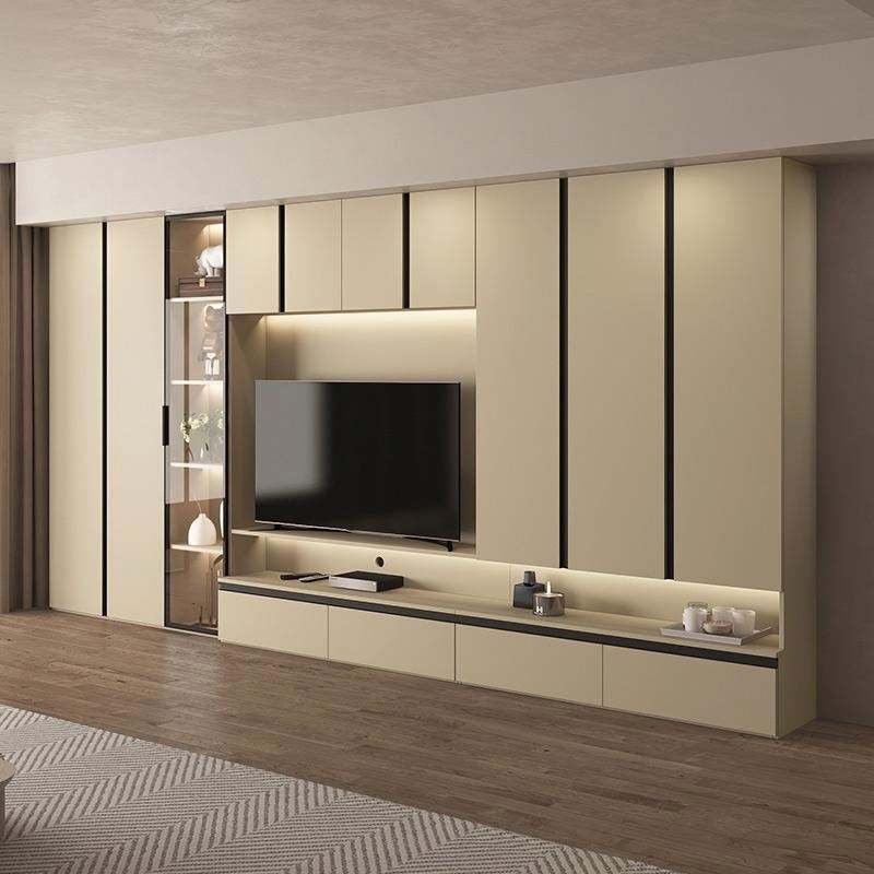 HMS 70ที่ทันสมัยไม้สีเทาที่ปิดและเปิดการจัดเก็บไฟ LED TV สำหรับบ้านไร่ห้องนั่งเล่น