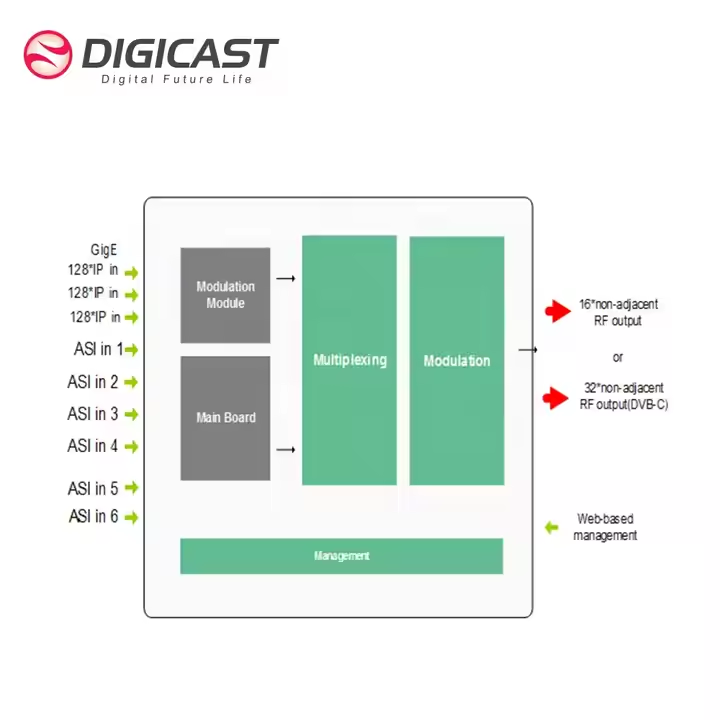 RF output:8/16/24*DVB-T/ATSC/ISDB-T or 16/32*DVB-C QAM
