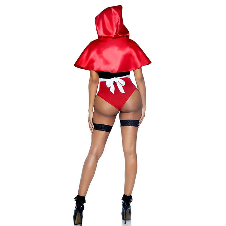 ชุดชั้นในคอสเพลย์เซ็กซี่สำหรับผู้หญิงเสื้อผ้าแบบมีฮู้ดสำหรับขี่ม้าสีแดงเสื้อผ้าอนิเมะสำหรับผู้หญิง
