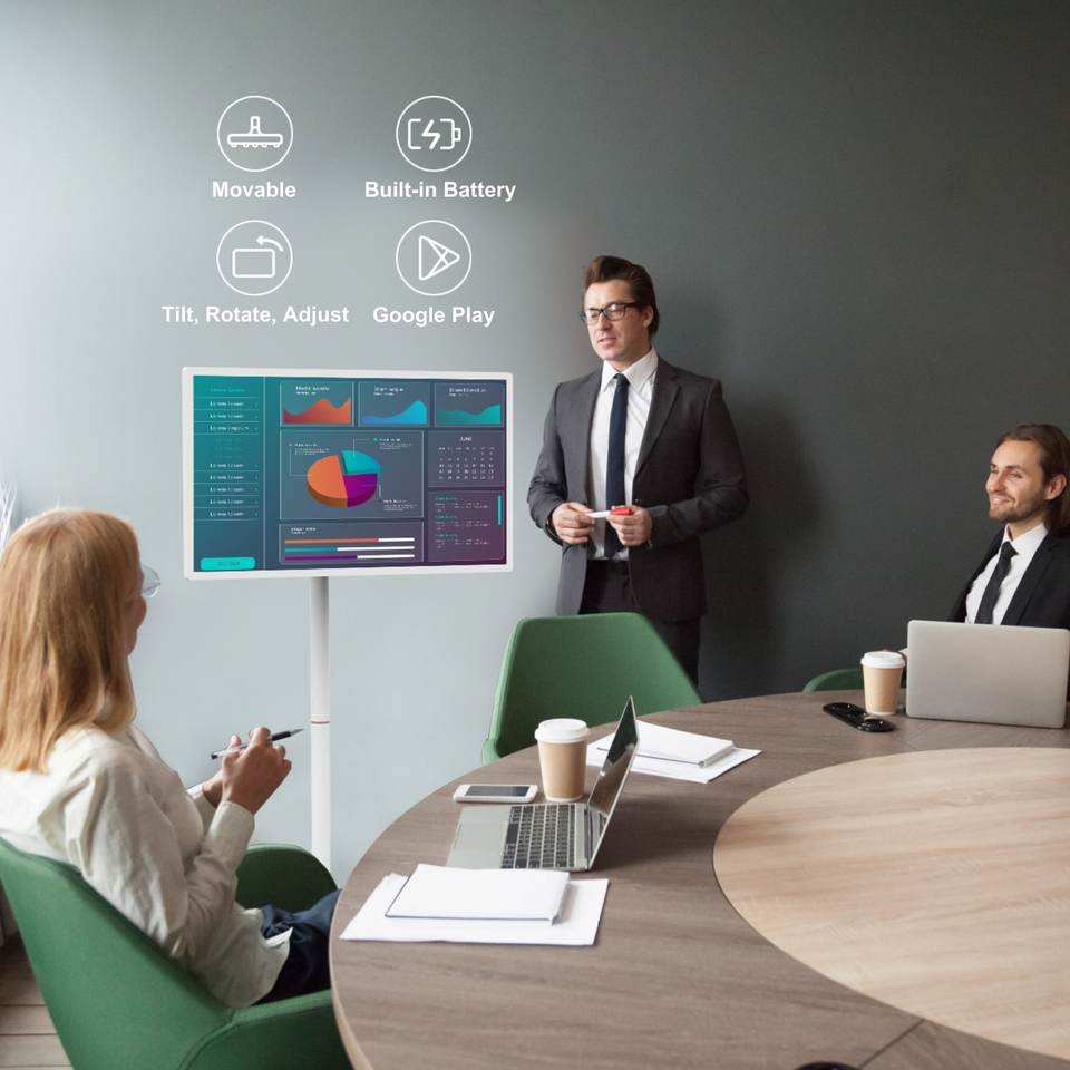 ทีวีสมาร์ทพกพาขนาด 21.5 นิ้ว พร้อมขาตั้ง ทีวี Google แบบชาร์จไฟได้ สำหรับธุรกิจและการเดินทาง
