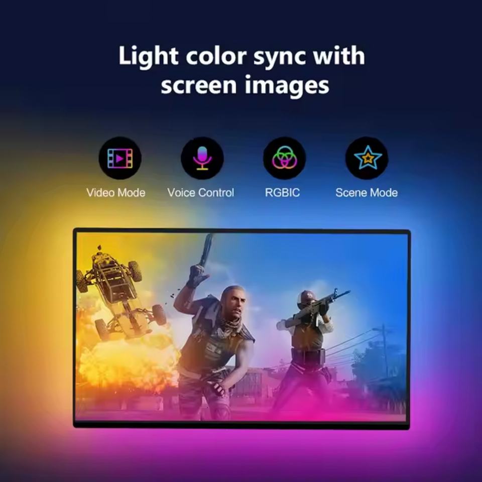 ไฟซิงค์ทีวี แถบไฟสำหรับเล่นเกมแบบ Immersive RGBIC ไฟ LED หน้าจอแบบ Dream Screen กล่องควบคุมไฟแฟนซี แถบไฟแบ็คไลท์ทีวี