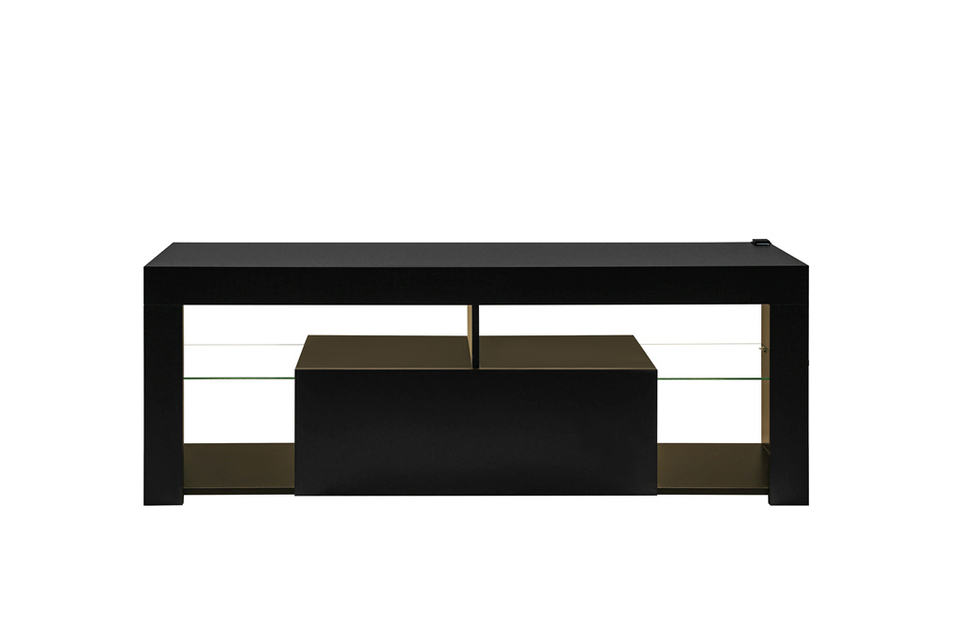 TV Unit Black LED TV Stand Clear Glass Shelving TV Cabinet