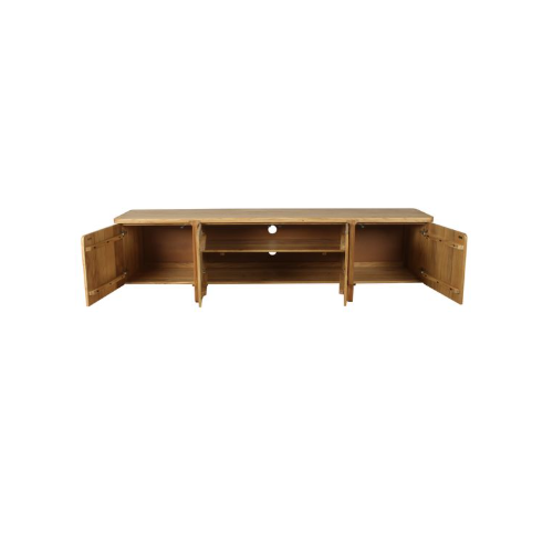 TVC ยูนิต4ประตูไม้อะคาเซียแข็งผิวแบบธรรมชาติและด้านหลัง MDF ห้องนั่งเล่นช่องสี่เหลี่ยมขาตั้งทีวีปรับได้