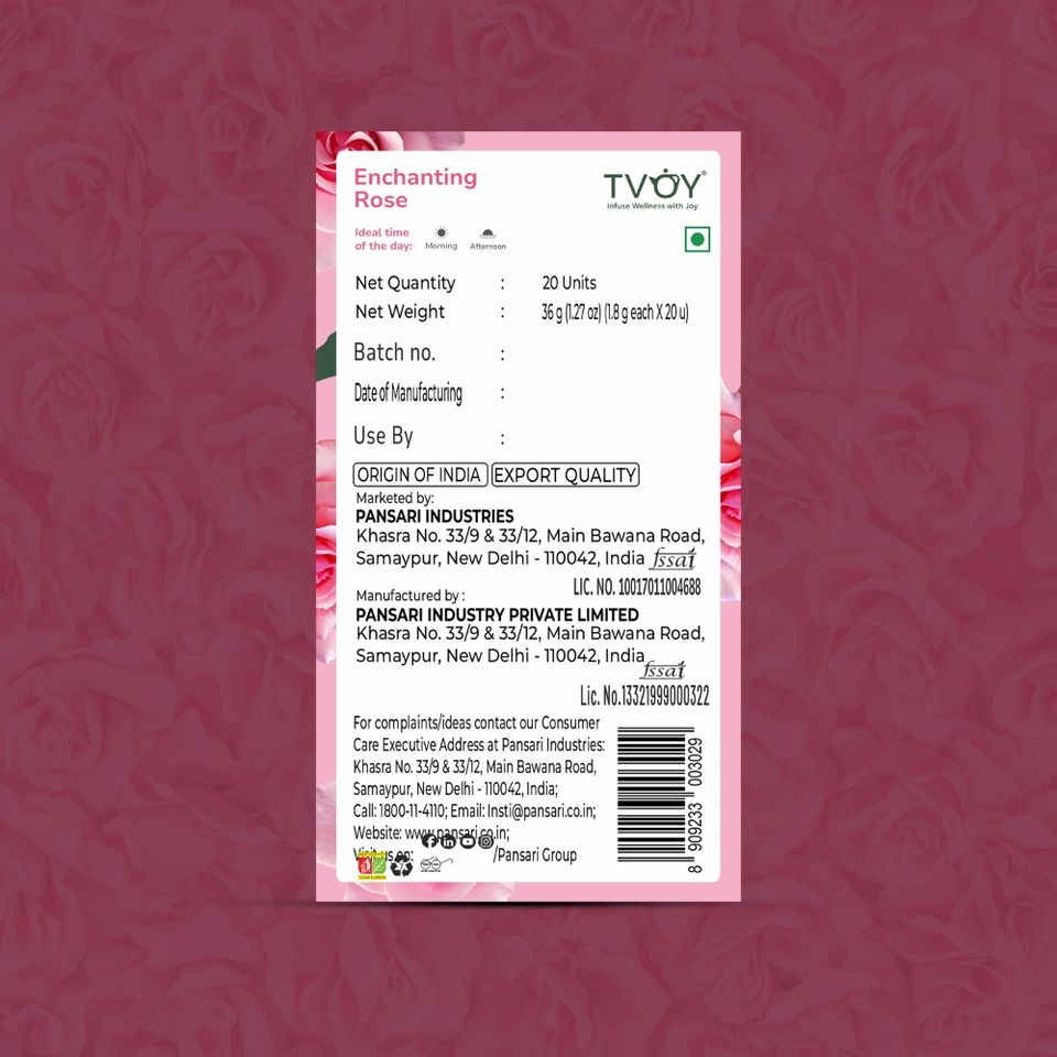 ชาเขียวทีวอย พรีเมี่ยม อัสสัม โรส กลิ่นหอมเย้ายวน ชนิดซองชา 1.8 กรัม x 20 ซอง ชาบริสุทธิ์ 100% ไม่มีสารเติมแต่งหรือสารกันบูด ชาเพื่อสุขภาพ