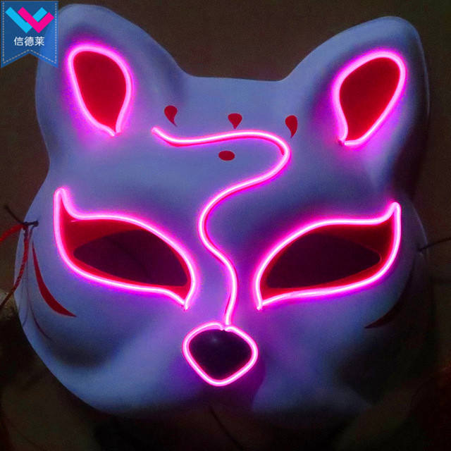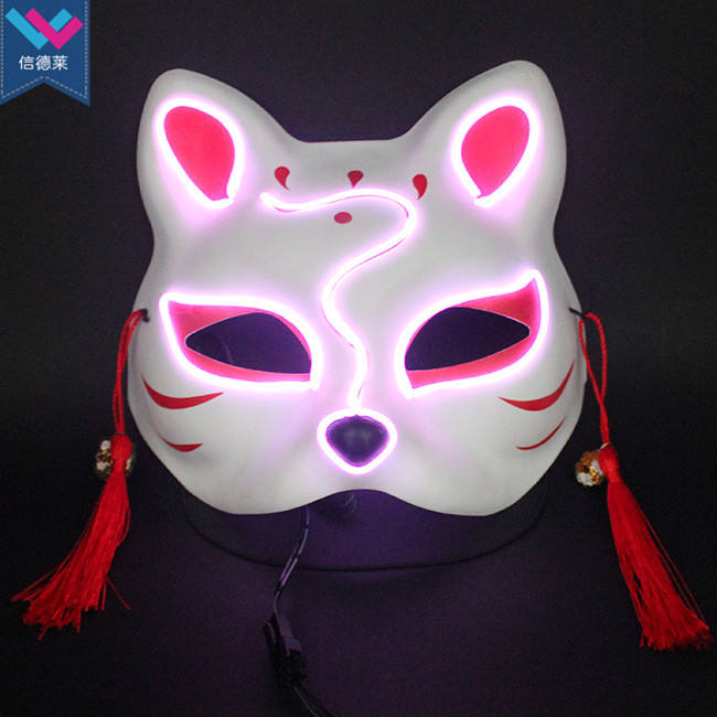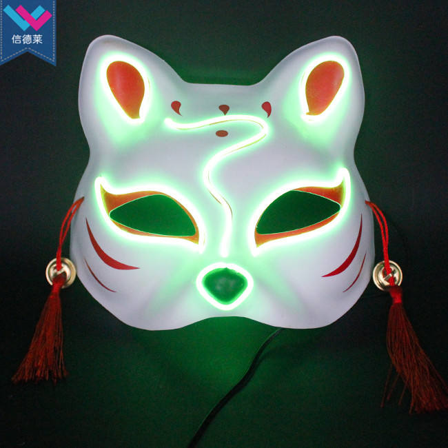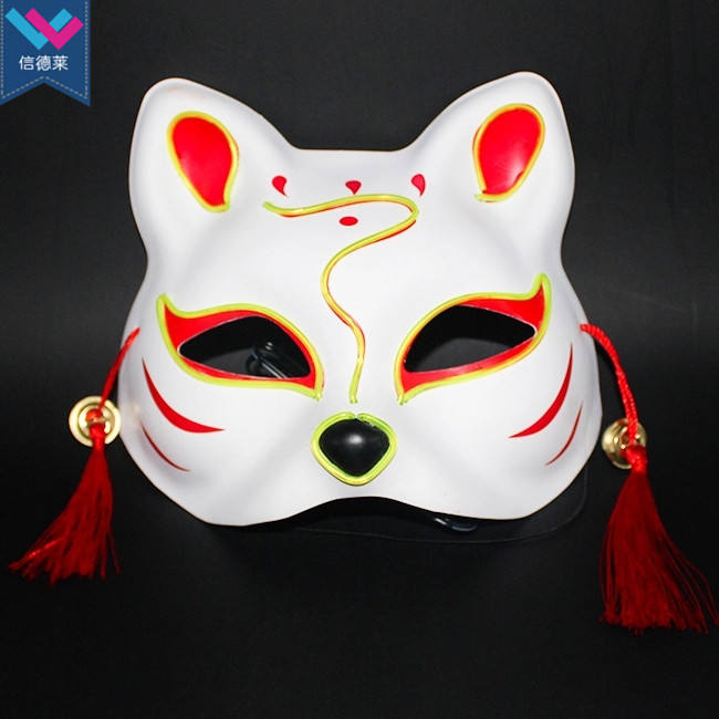 TW-085 Japanese Kabuki Kitsune Cosplay Prop Half Face EL Light Mask Halloween Parties Masquerade Festivals Featuring Anime Fox
