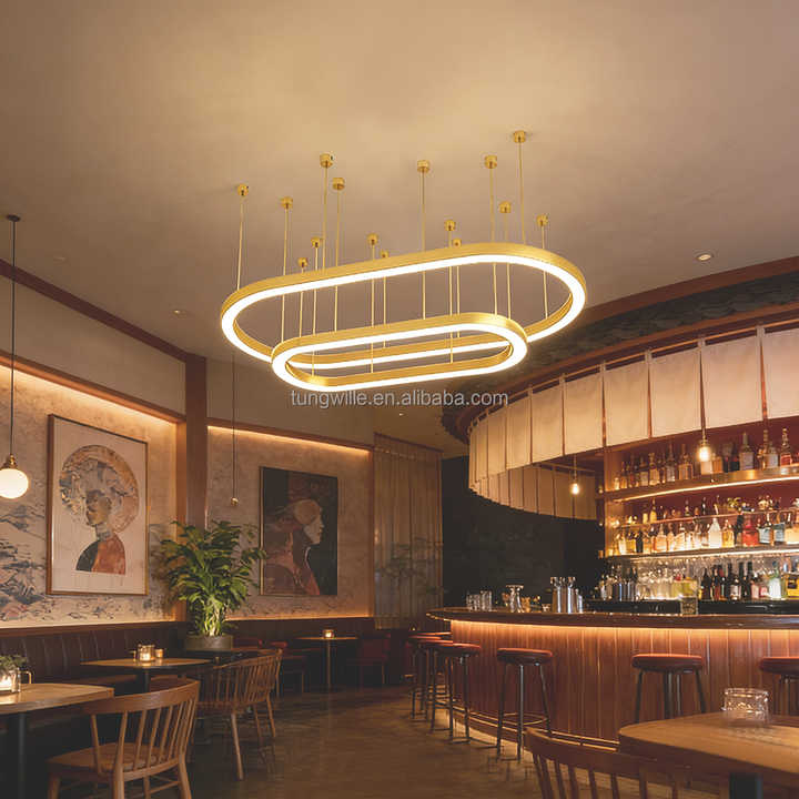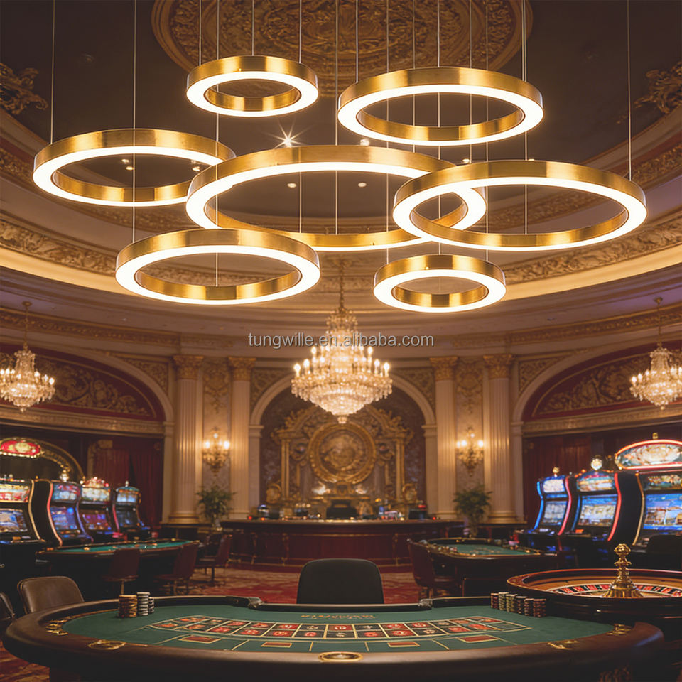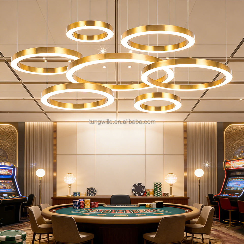 โคมไฟระย้าวงแหวน LED รุ่น TW5075C สีทอง ดีไซน์ทันสมัย สไตล์อินดัสเทรียล เหมาะสำหรับสำนักงาน ร้านค้า ล็อบบี้ และโครงการต่างๆ