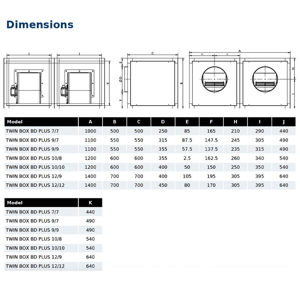 กล่องคู่ BD บวก12/9 M6 0,76kW แรงดันต่ำพัดลมแฝดในตู้กันเสียงช่วงการไหลของอากาศจาก1850ถึง10460 m³/H
