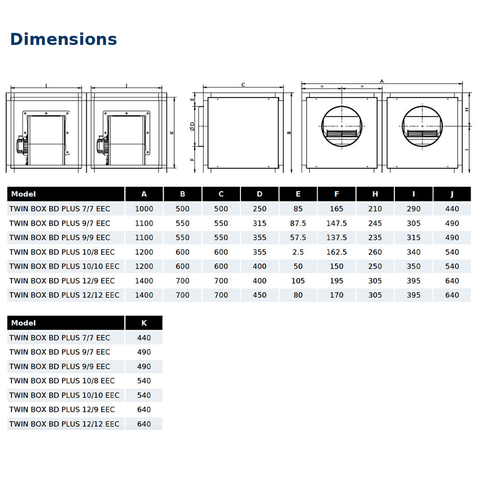พัดลมแบบแรงเหวี่ยงคู่9/9 EEC ในตู้กันเสียงพร้อมมอเตอร์ EEC คู่ช่วงการไหลของอากาศจาก2870ถึง7420 m³/H
