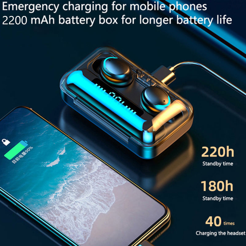 หูฟังไร้สาย TWS LED,หูฟังไร้สายสเตอริโอเบสลึกหูฟังกันน้ำพร้อมไมค์