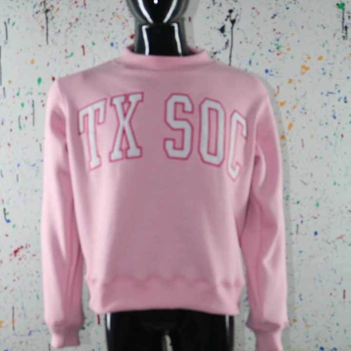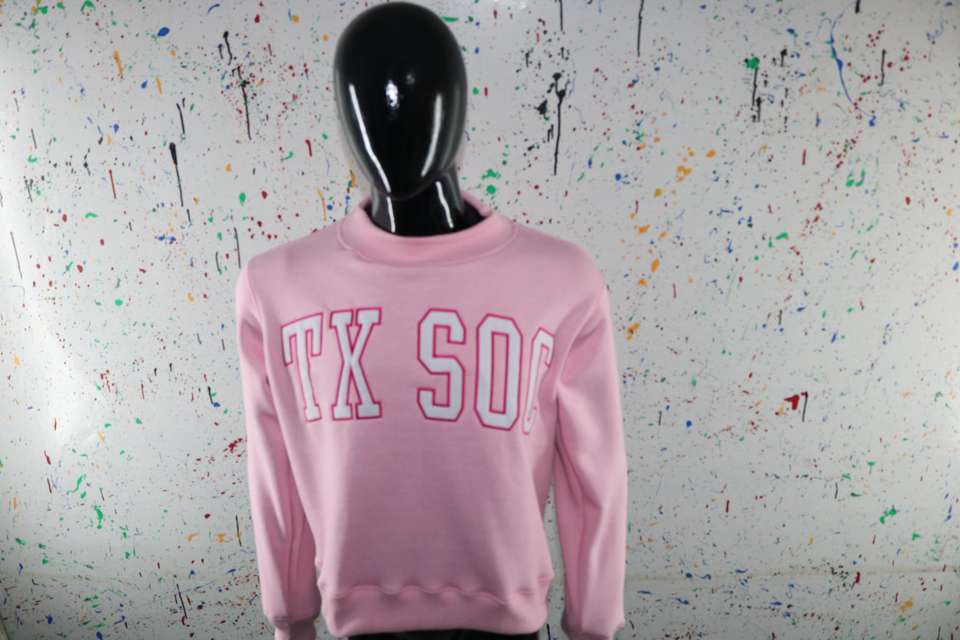 เสื้อสเวตเชิ้ตคอเต่า TX SOC สีชมพู ผ้าฝ้าย 100% สีขาว ปักลายแบบแอพพลิเค คอเสื้อกว้าง ยี่ห้อ URBAN PRODUCTIONS