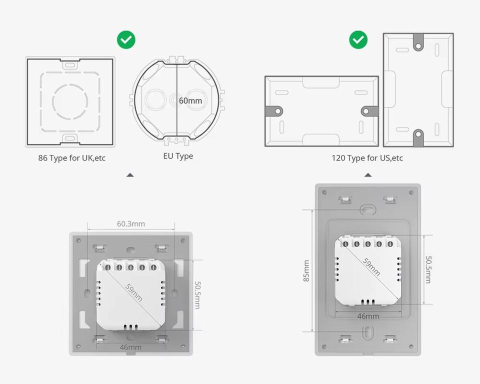 สวิตช์ไฟอัจฉริยะ TX T5 86 1C WiFi หน้าจอสัมผัสเต็มรูปแบบ ควบคุมแสงด้วยเสียง ติดตั้งบนผนัง รองรับไฟสูงสุด 220V พร้อมระบบจัดเก็บข้อมูลบนคลาวด์