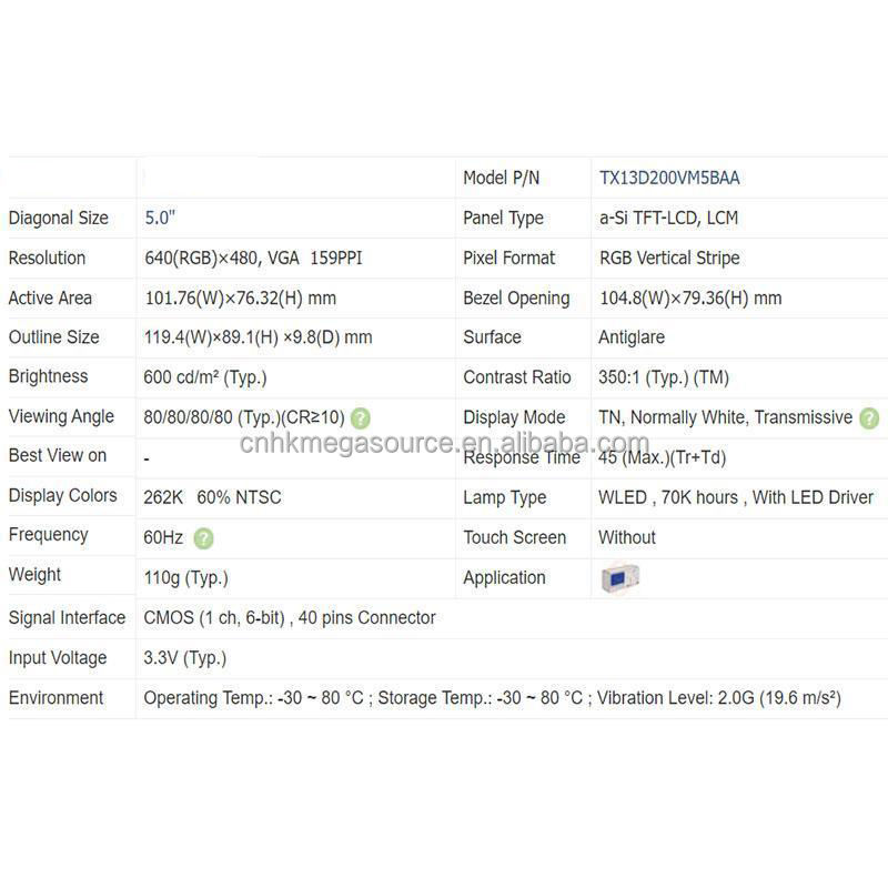 TX13D200VM5BAA 5นิ้วหน้าจอ640*480จอแสดงผล LCD TX13D200VM5BAA แผง LCD