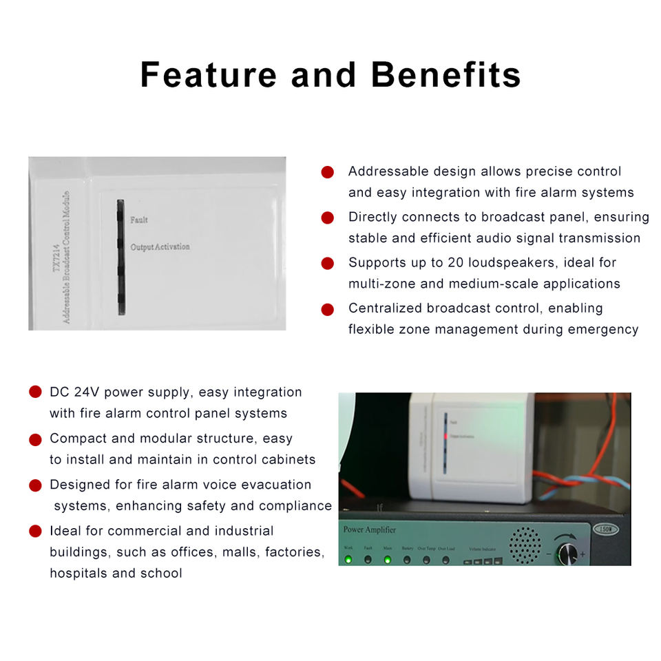 TX7214 EN54โมดูลควบคุมระบบกระจายเสียงแบบแอดเดรส DC 24V 20รับประกัน1ปีสำหรับระบบสัญญาณเตือนไฟไหม้
