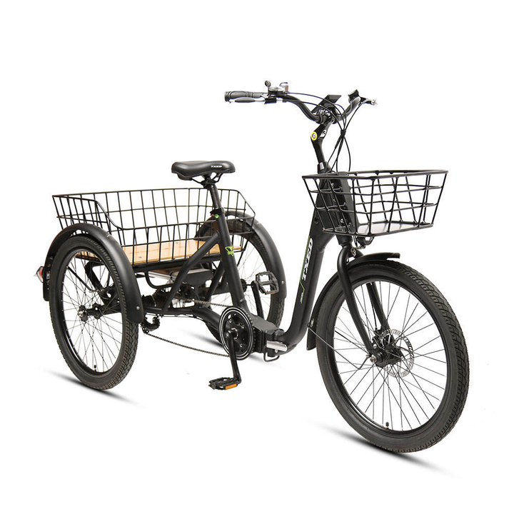 จักรยานบรรทุกไฟฟ้าพับได้ 3 ล้อ TXED แบบเปิด 250W 26 นิ้ว พร้อมดิสก์เบรก ระยะทาง 30-50 กม. ได้รับการรับรองมาตรฐาน CE เหมาะสำหรับการส่งของและการใช้งานในครอบครัว