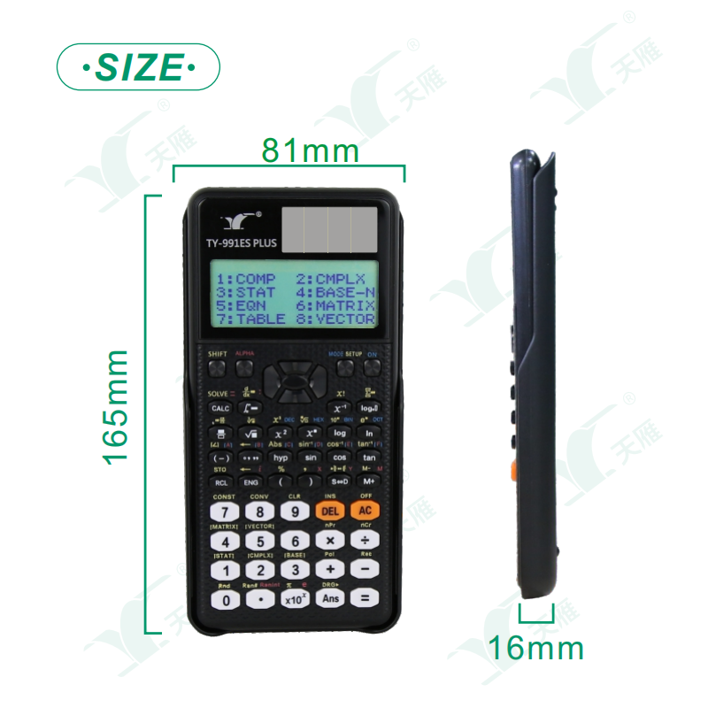 เครื่องคิดเลขวิทยาศาสตร์ TY-991ES Plus พร้อมฟังก์ชัน 417 แบบ ใช้พลังงานสองระบบ ตัวเครื่องทำจากพลาสติก หน้าจอแสดงผลสองบรรทัด