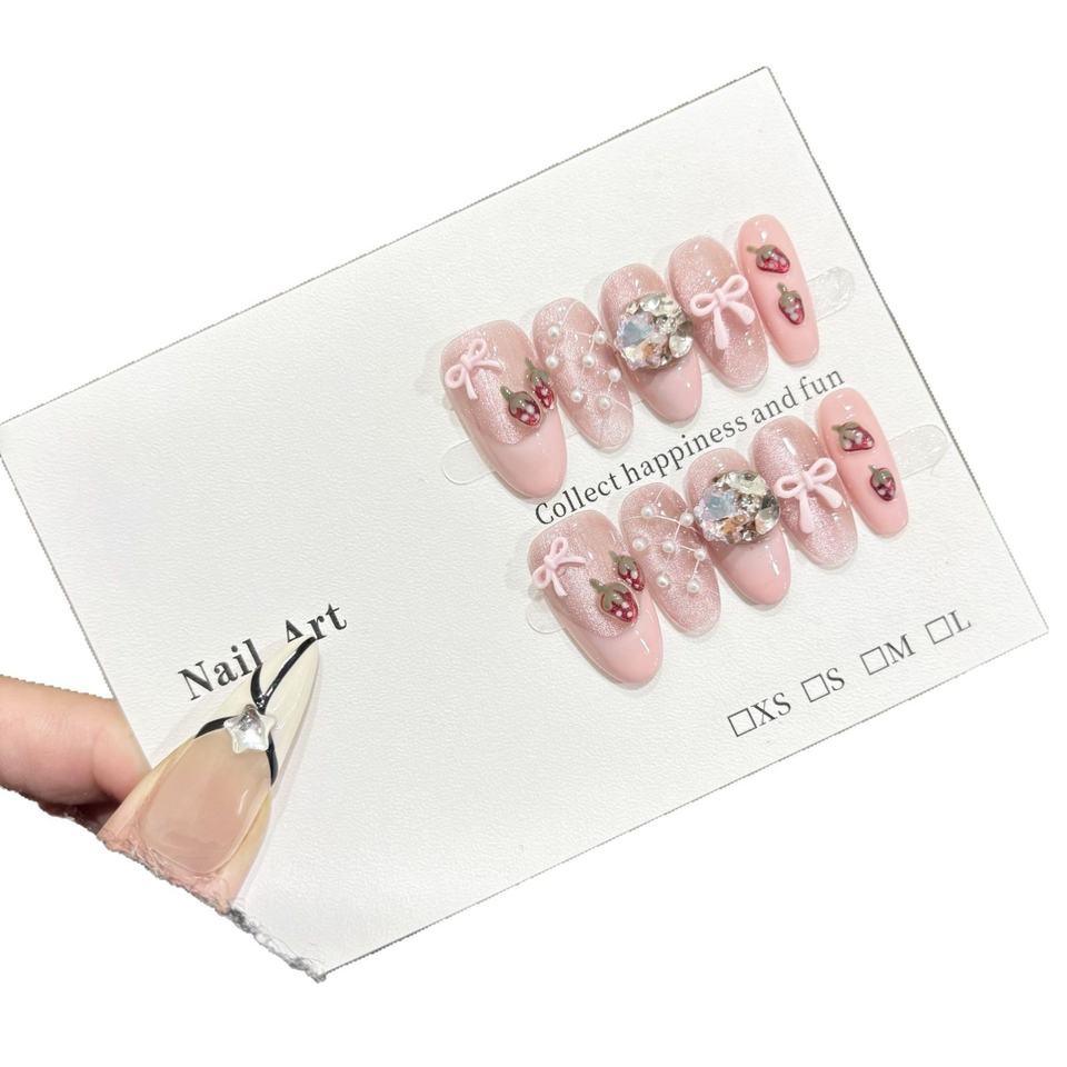 TY-A027 Handmade French Style Cat's Eye Pinch Fresh Pink Armor for Girls New Strawberry Pie-inspired Finger Wearing Pieces