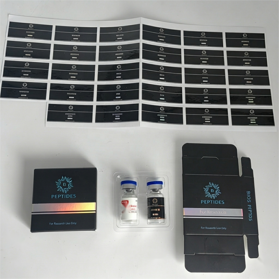 กล่องบรรจุภัณฑ์ขวดเพปไทด์แบบรีไซเคิลเคลือบเงาพรีเมียมพิมพ์โลโก้ตามสั่ง พร้อมลายนูนโฮโลแกรม ขนาด 3 มล. และ 10 มล. ทำจากกระดาษอาร์ตและพลาสติก