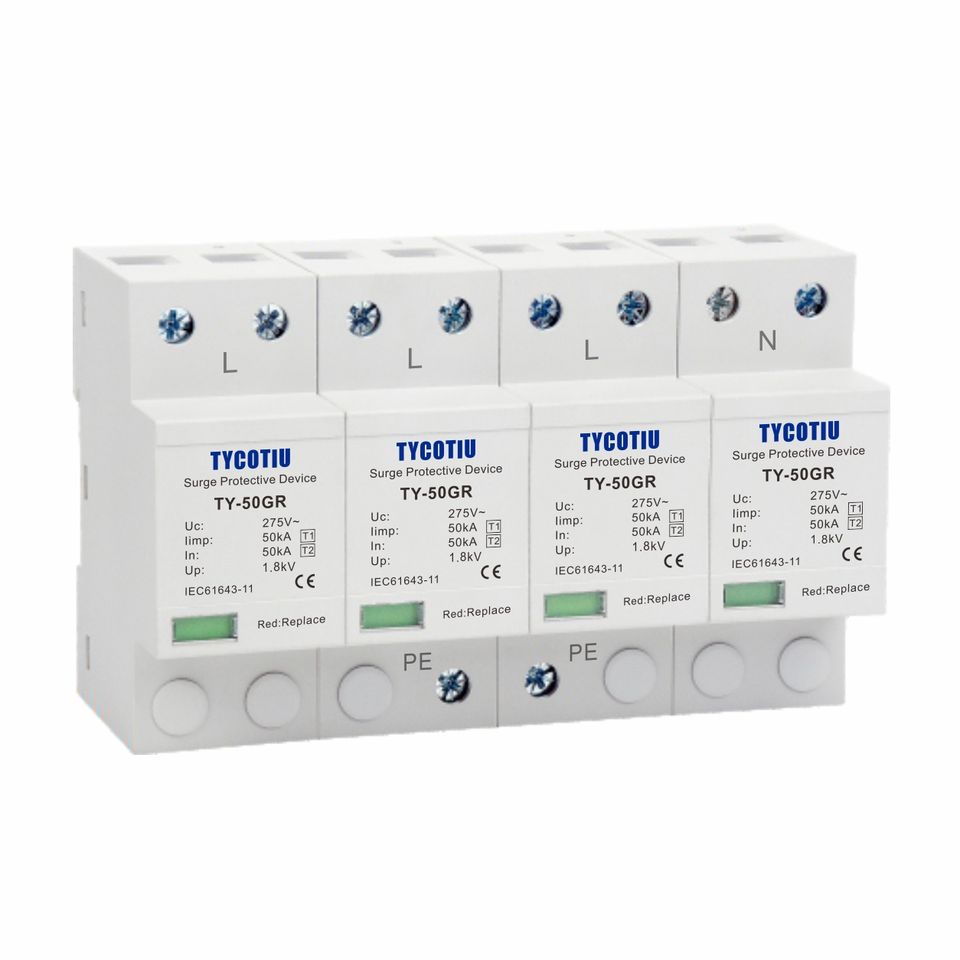 TYCOTIU BR-50GR 3P AC Industrial Power System IEC Certified Surge Protector IP20 Degree lightning protection Device T1 T2