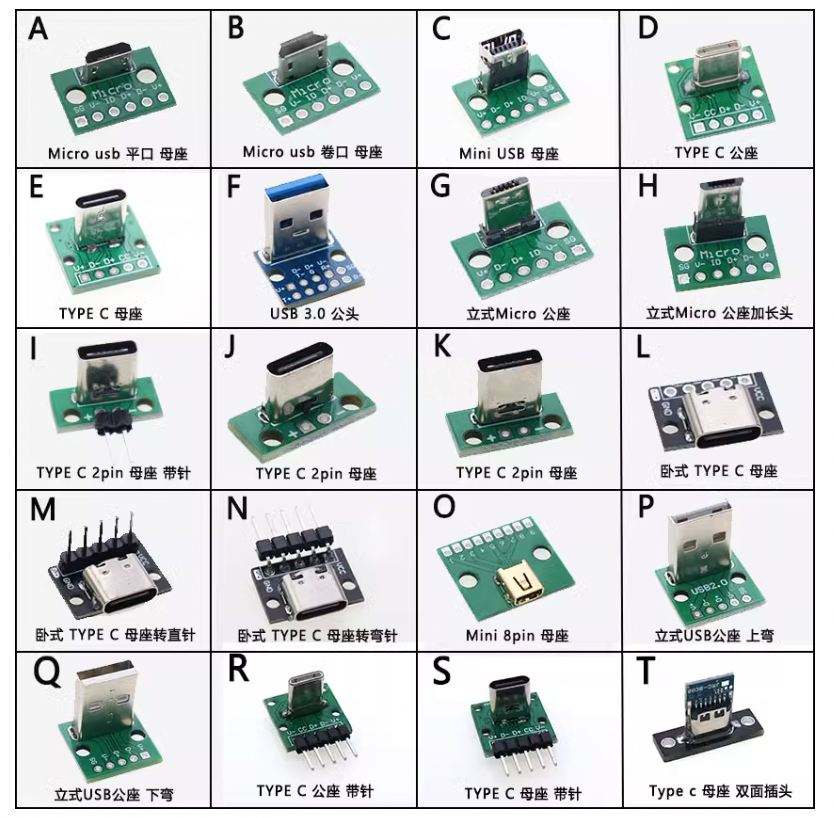 บอร์ดทดสอบหญิง3.1ไมโคร USB แนวตั้งแบบ TYPE-C พร้อมบอร์ด PCB และขั้วต่อตัวเมีย