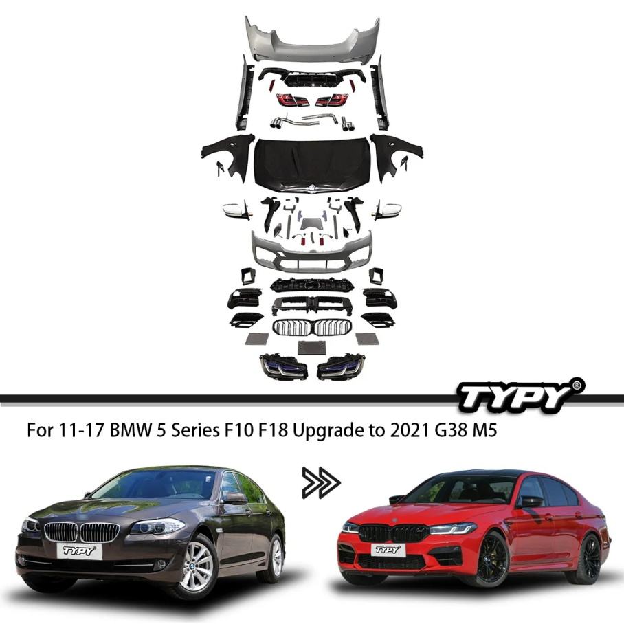 ชุดแต่ง TYPY สำหรับ BMW ซีรีส์ 5 รุ่น F10 F18 อัพเกรดเป็นรุ่นปี 2021 G38 M5 กันชนหน้าและหลัง พร้อมไฟอัตโนมัติ