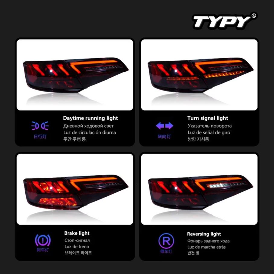 ไฟท้ายรถยนต์ TYPY สำหรับ Audi A3 รุ่น Hatchback ไฟท้าย LED พร้อมไฟ DRL ไฟเลี้ยว ไฟเบรก ไฟถอยหลัง ปี 2013-2016