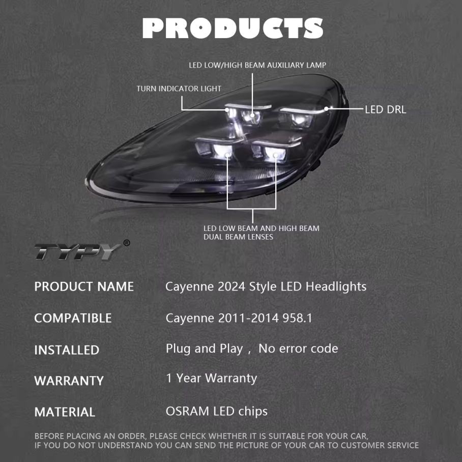 ชุดไฟหน้ารถยนต์ TYPY ราคาขายส่งแท้ สำหรับ Porsche Cayenne 958.1 ปี 2011-2014 อัพเกรดเป็น Cayenne 9Y0.2 ปี 2024 รุ่นใหม่