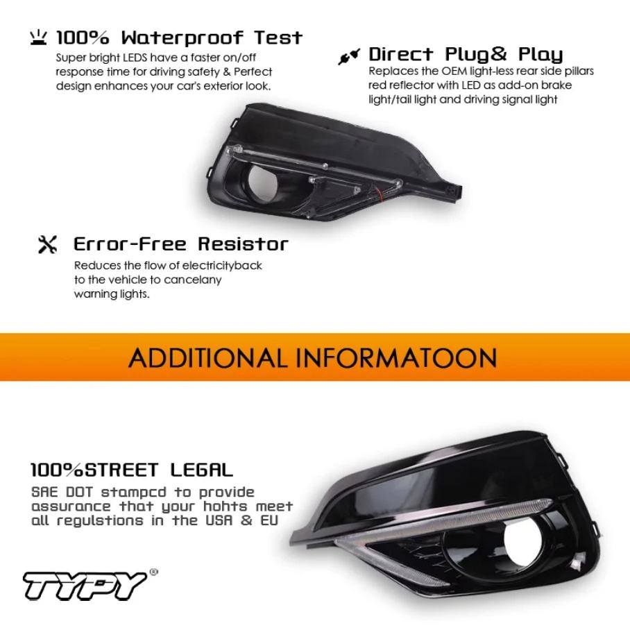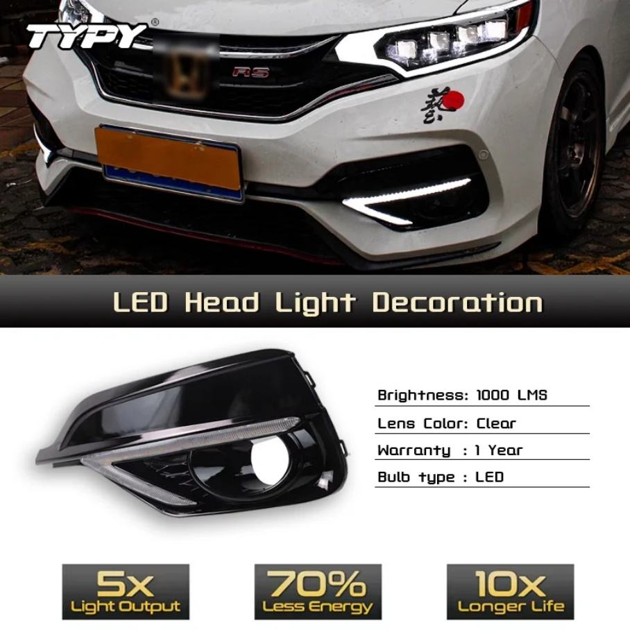 รีเลย์ไฟเลี้ยวสีเหลืองสำหรับรถยนต์ฮอนด้า ฟิต แจ๊ส สปอร์ต อาร์เอส ปี 2018 2019 ไฟเดย์ไลท์ LED 12V กันน้ำ ไฟตัดหมอก