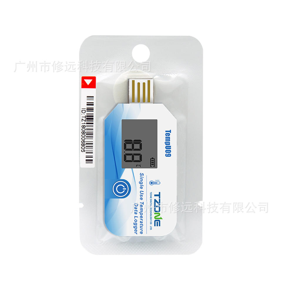เครื่องบันทึกข้อมูลอุณหภูมิ TZONE TempU09 แบบใช้ครั้งเดียว ช่องต่อ USB ช่วงอุณหภูมิ -30 ถึง 60 องศาเซลเซียส สำหรับการขนส่งแบบควบคุมอุณหภูมิ