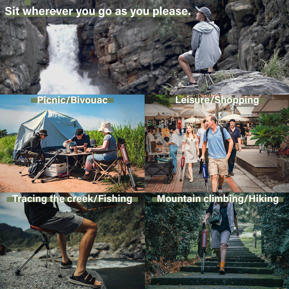 เก้าอี้ Series2 TA-da ไม้เท้าอลูมิเนียมพับได้สีแดงกุหลาบ92ซม. ไม้เท้าพร้อมฐานยางกันลื่น